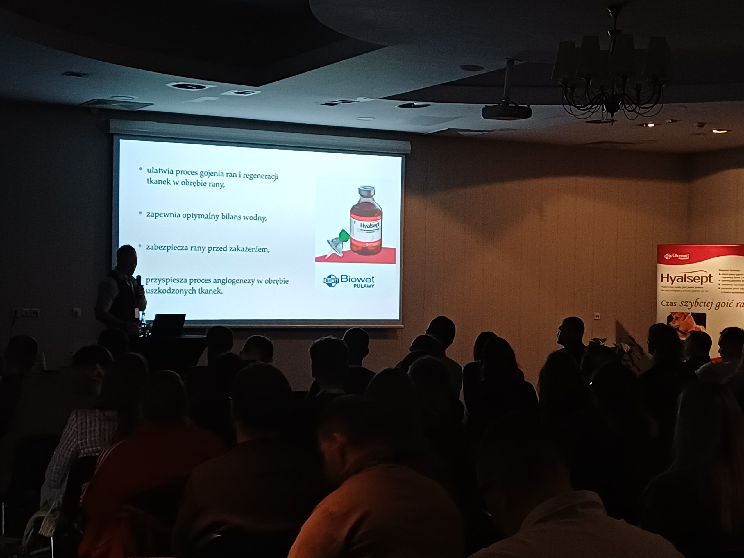 Podczas wydarzenia zaprezentowaliśmy nasze stoisko firmowe, na którym szczególnym zainteresowaniem cieszył się produkt Hyalsept. Dodatkowym wyróżnieniem było nawiązanie do Hyalseptu w trakcie wykładu prowadzonego przez lek. wet. Jakuba Kaczmarka, Dipl. ECVS, co potwierdza jego wartość i uznanie w codziennej praktyce klinicznej. Konferencja stanowiła doskonałą okazję do budowania relacji oraz wzmacniania obecności marki Biowet Puławy w środowisku lekarzy weterynarii.