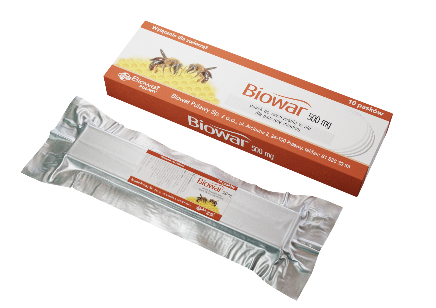 The product is to be suspended inside a beehive in a dose: 2 strips/1 hive.