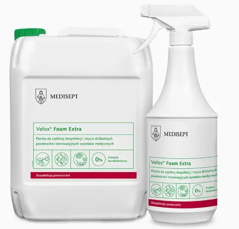 Pianka Velox® Foam Extra zalecana jest do dezynfekcji różnorodnych powierzchni nieinwazyjnych wyrobów medycznych ze szkła, porcelany, metalu, gumy, tworzyw sztucznych oraz szkła akrylowego. Może być stosowana na oddziale intensywnej opieki medycznej oraz bloku operacyjnym, do dezynfekcji aparatury medycznej, sprzętu rehabilitacyjnego, foteli zabiegowych, inkubatorów i lamp zabiegowych.